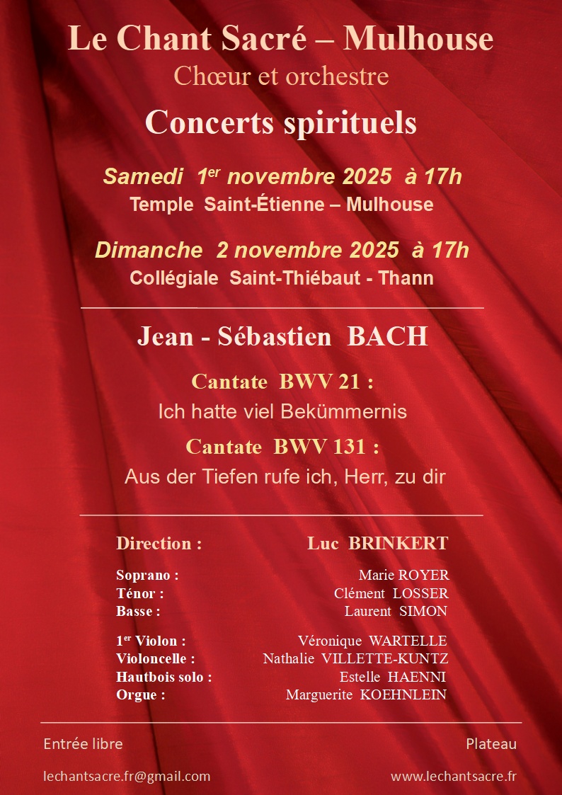 Luc Brinkert a choisi deux des cantates de Bach les plus connues et parmi les plus émouvantes.